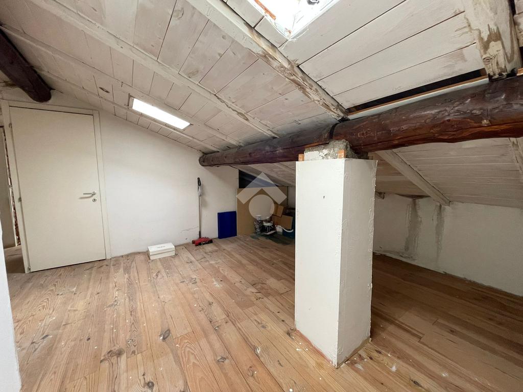 La soluzione si compone di: soggiorno, cucina separata con accesso al balcone, camera da letto matrimoniale, bagno finestrato con doccia e tutti i sanitari e mansarda collegata internamente.